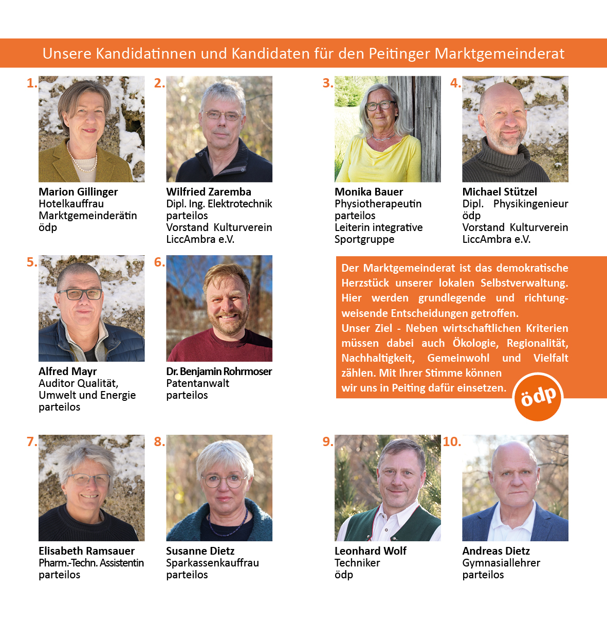 Unsere Kandidatinnen und Kandidaten stehen für genau das – mit Engagement, Sachverstand und Herz für Peiting.